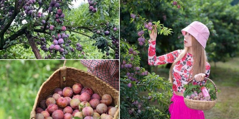 Vào mùa thu hoạch, mận tại đây chín rộ, quả mọng đỏ và rất dễ hái, bất kì ai cũng cảm thấy thúc khi được tận tay hái những chùm mận chín đỏ, thưởng thức ngay tại vườn.